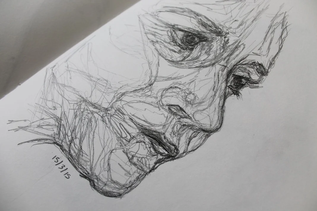 Here’s a pencil sketch I did one dark evening, flicking through the pages of a newspaper I came across some political article featuring a face which took my fancy. I drew this politician in 2B pencil and in the continuous line style.