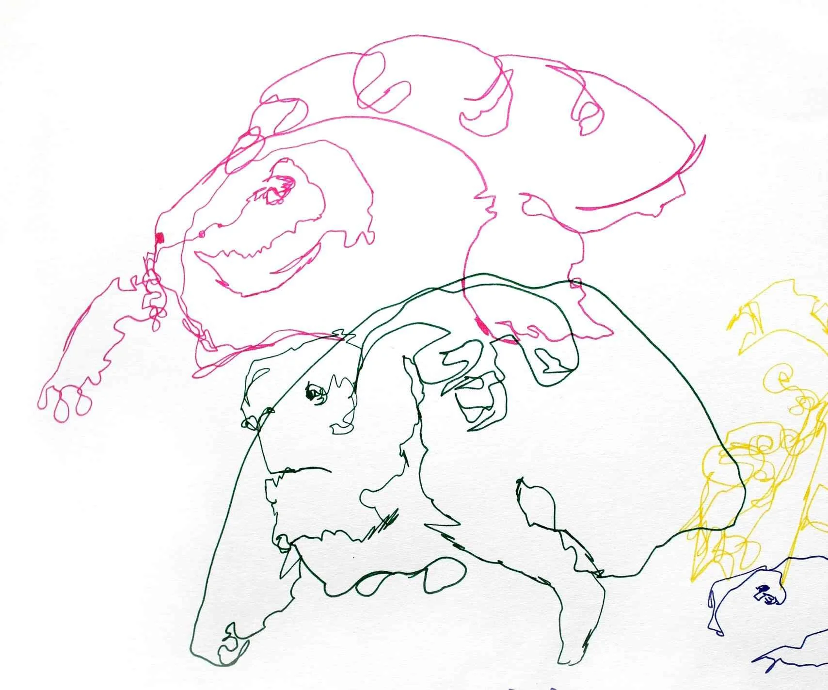 These nightmarish images you see below are tortoises of course! The middle image is the results of some continuous line drawing where you cannot lift the pen off the paper, I added some water for a leaky effect if you wondered why some appear to be dribbling.