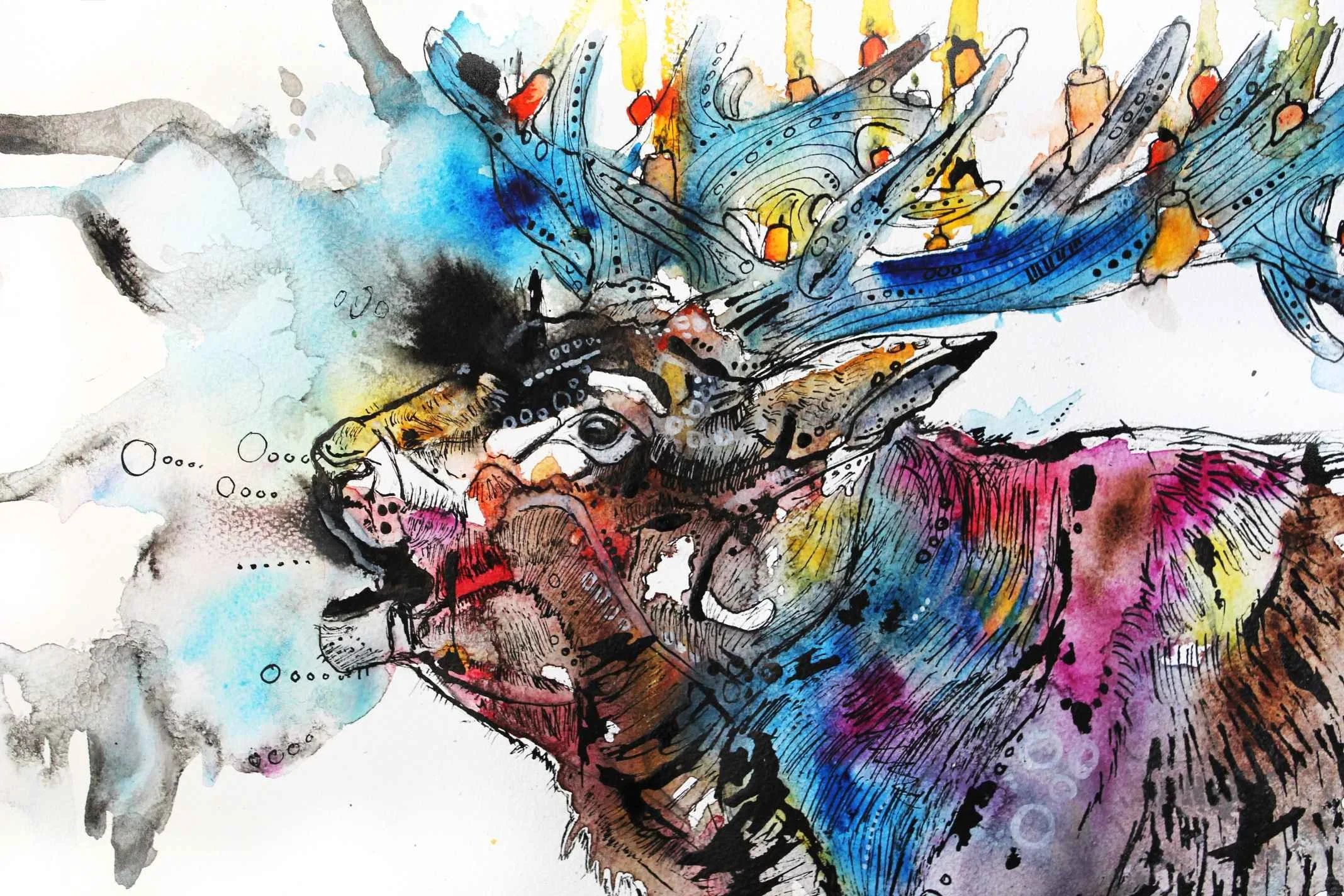 For ‘wild’ I used a grizzly bear and for ‘farewell’ I depicted a deer nuzzling a hare.
