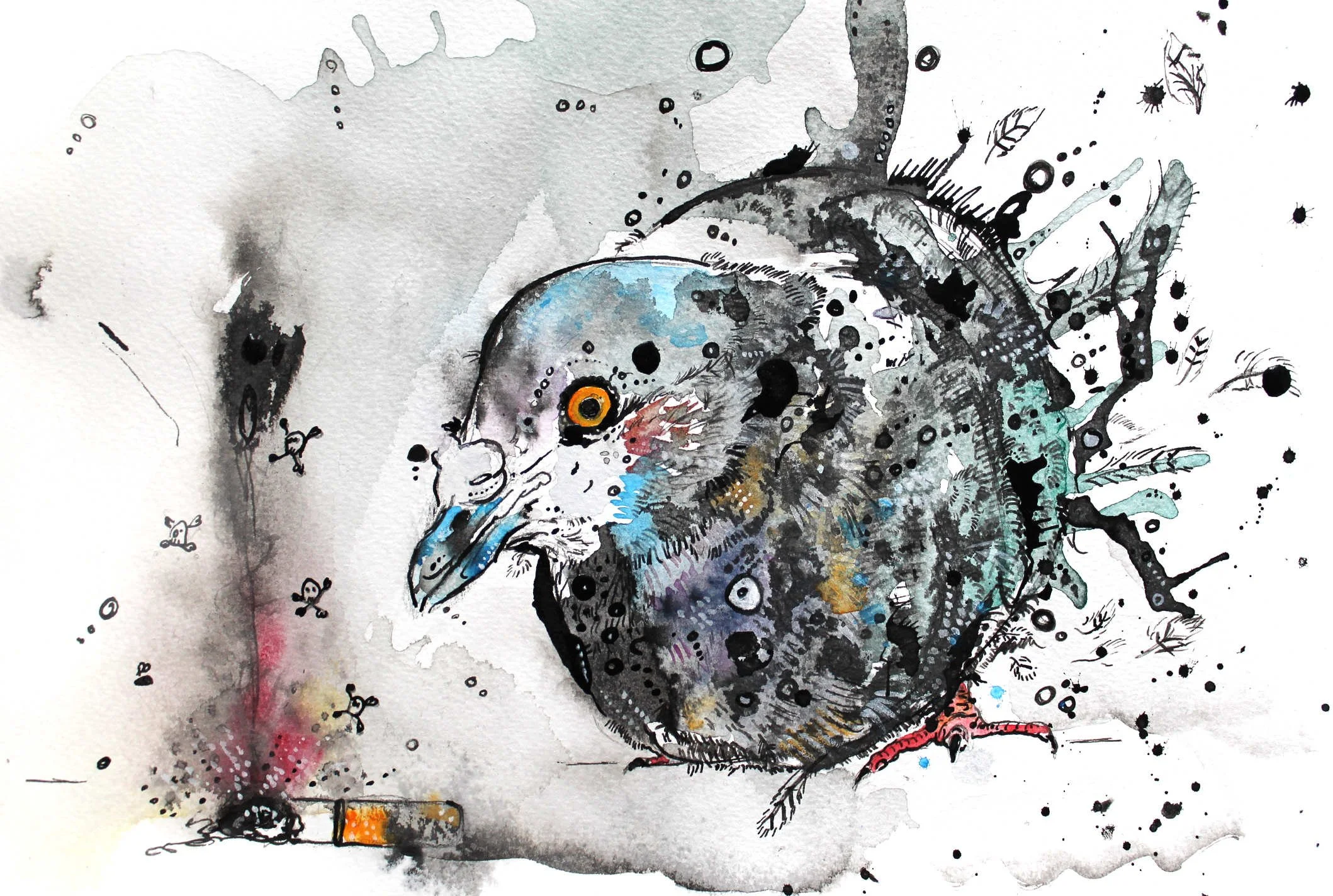 This was is my first ever Illustration Friday topic. For ‘urban’ I chose my favourite aspect of urban life, the pigeon! I love pigeons so I couldn’t pass up the chance to depict one using my favourite media.
