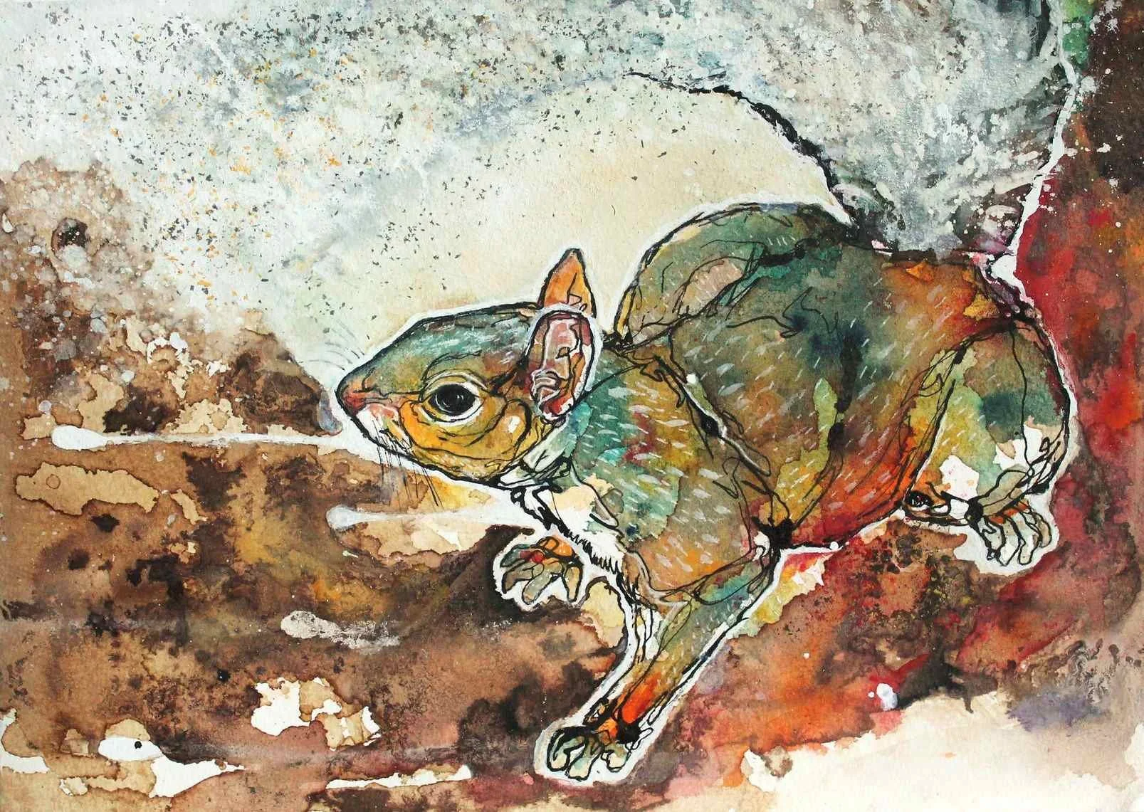 I normally chuck an illustration away before it’s even dry if I’m fed up with it, but this painting has taught me to be a little more risky with image making, it helped having an idol such as Rubis Firenos who works wonders with her coffee creations. Due to how pleased I was with the continuous line drawing of the squirrel I made a run of lino prints which will be featured soon.