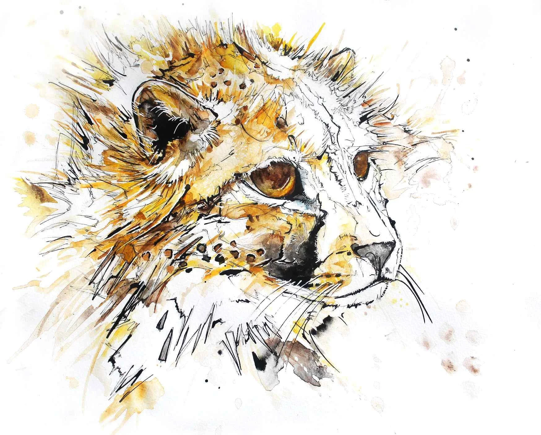 I wanted to paint the cheetah the same way as a fox I created in 2015, by leaving sections unpainted. I want to explore this much more in future paintings, I really like this style!