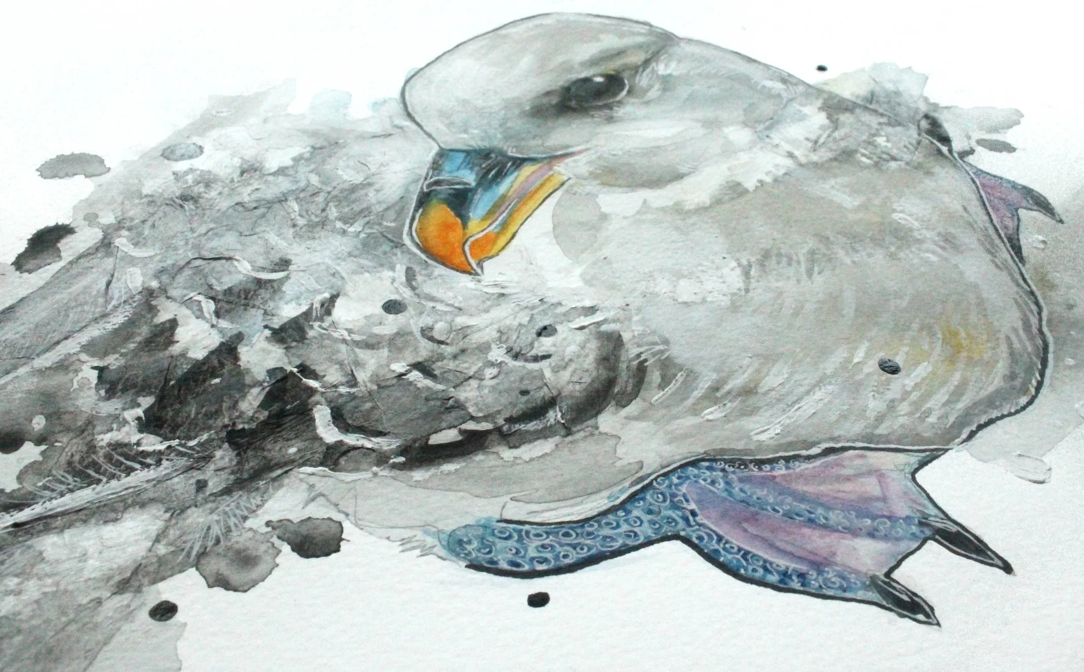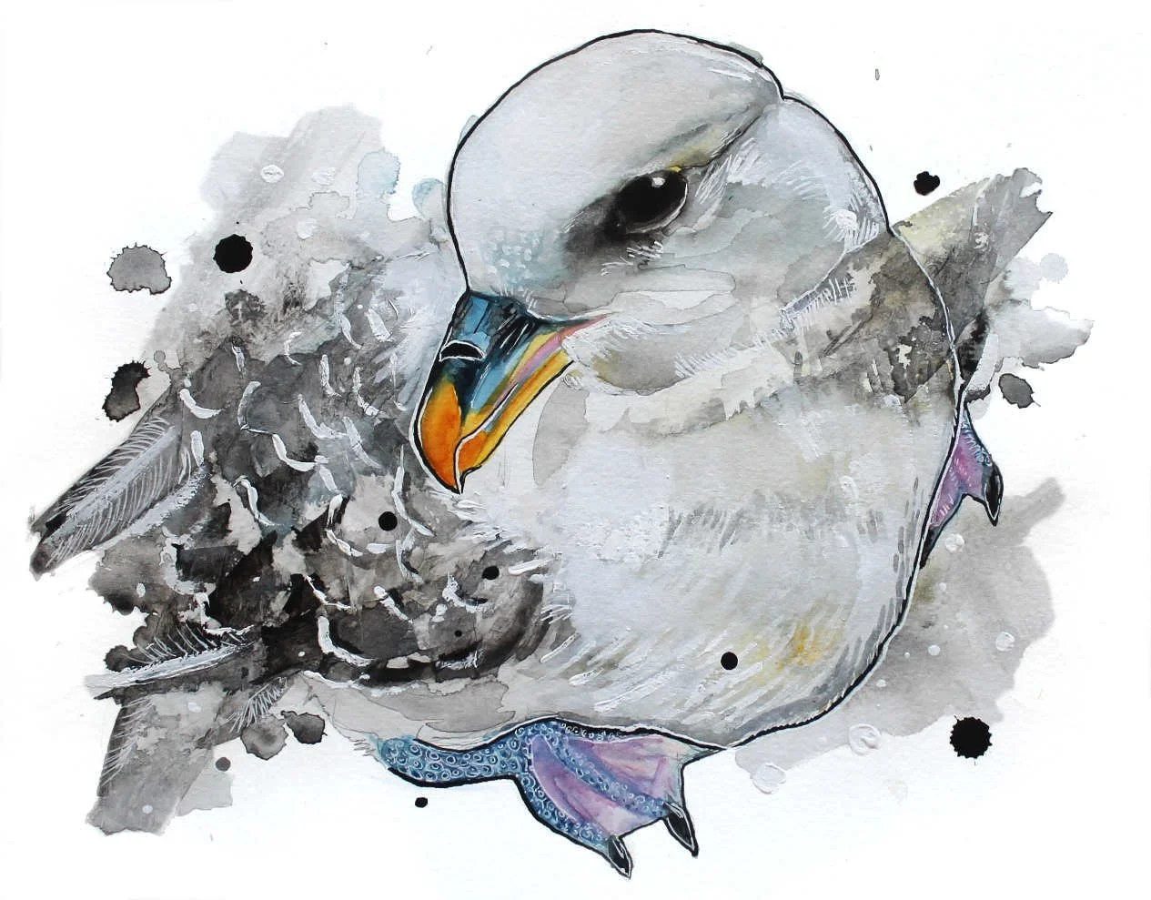 I painted this fulmar two years ago and it was a significant challenge for me being a white subject matter on white paper. If you wanted to learn more about this painting and the fulmar in general, head on over to NemobySea.com where additionally you can see what I look like in a swim cap (spoiler: really dumb!).
