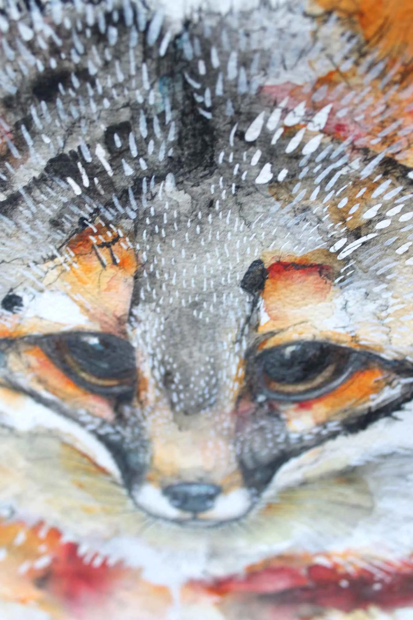 I’m not happy with any of these grey fox paintings but again, they were colourful enough that they would make a nice addition to the site. Grey foxes are found in the Americas and are like our red foxes carnivorous and nocturnal, but unlike red foxes are agile tree climbers!