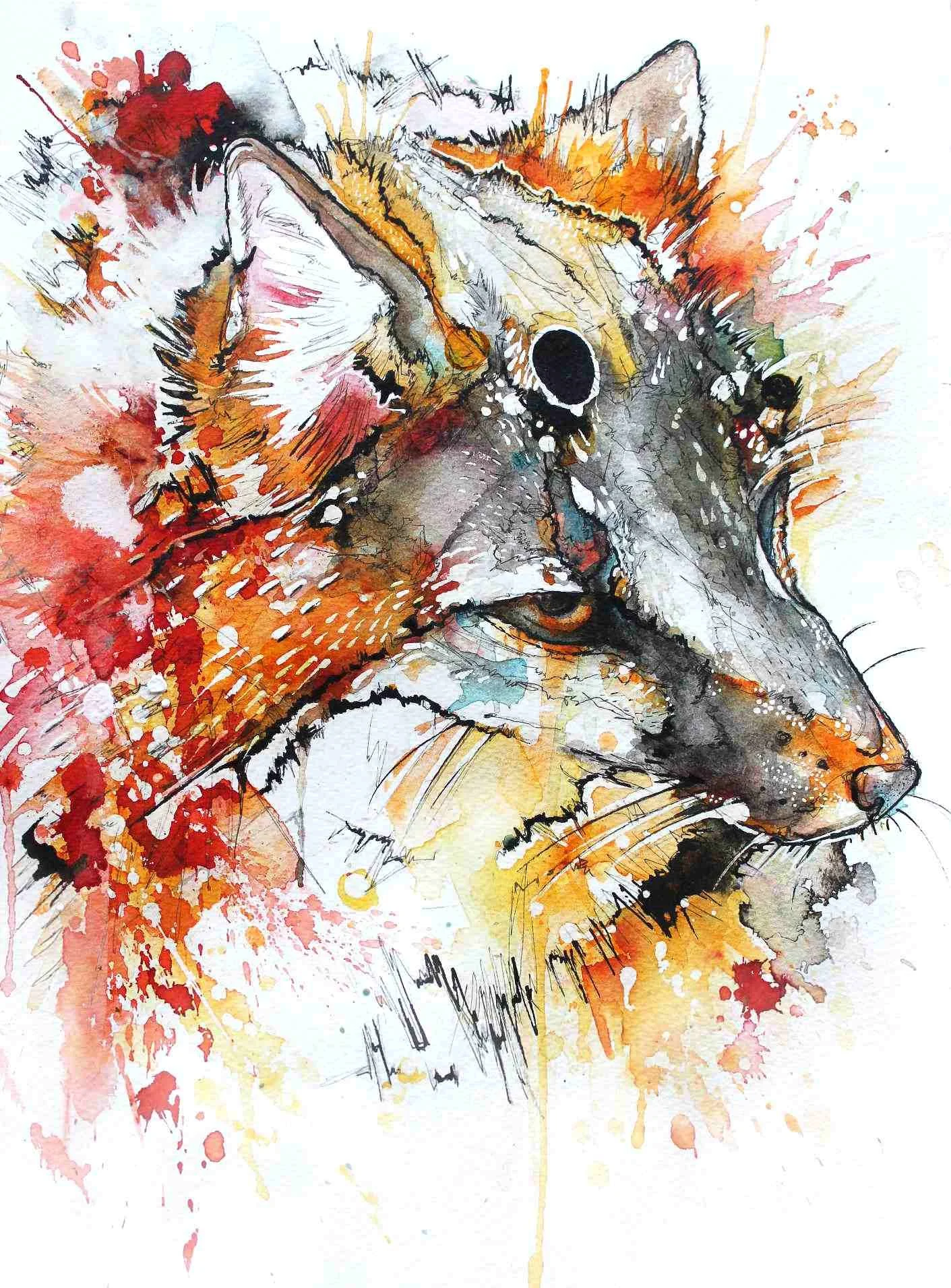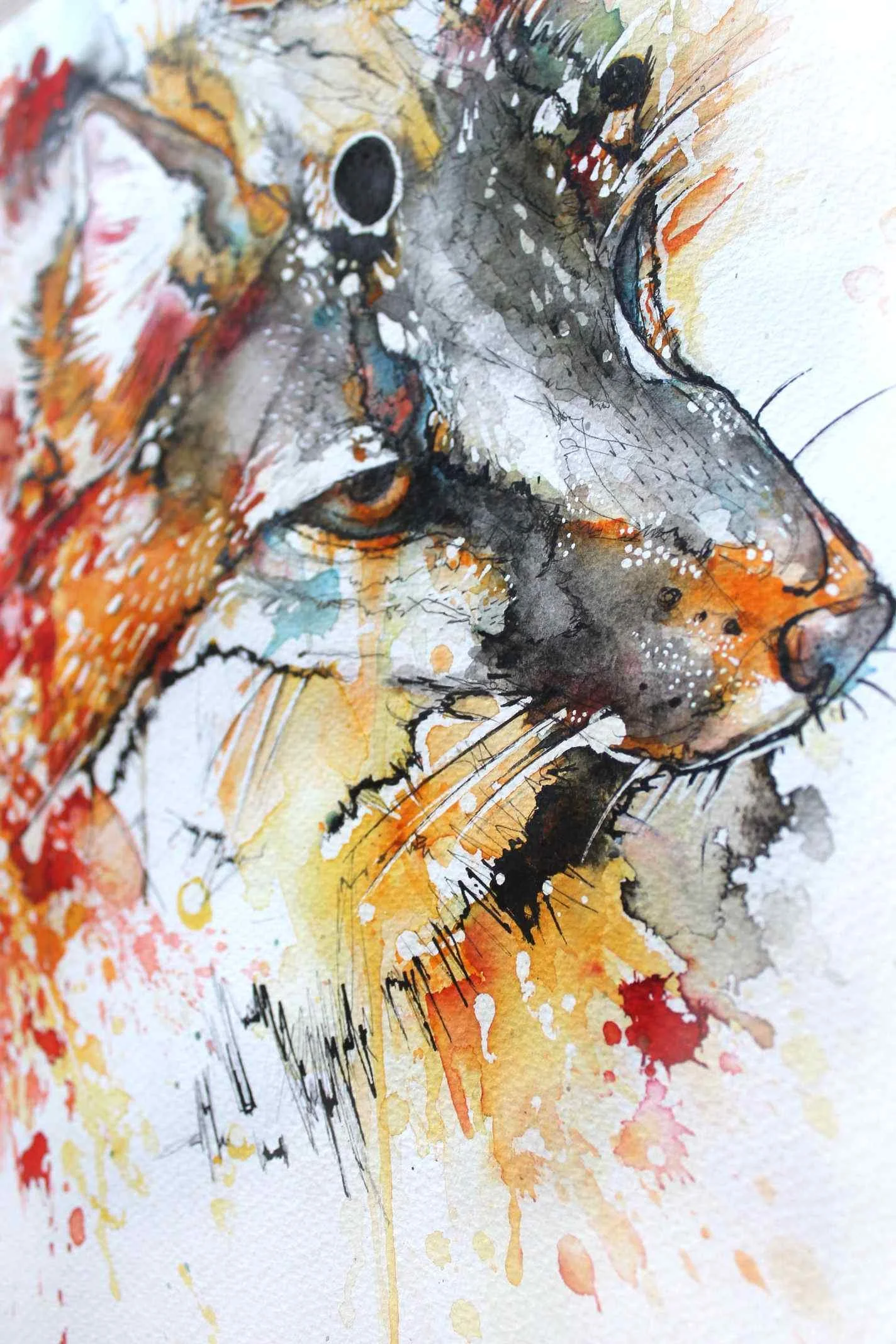 These foxes were painted on cold pressed watercolour paper and in Brusho, watercolour and ink.