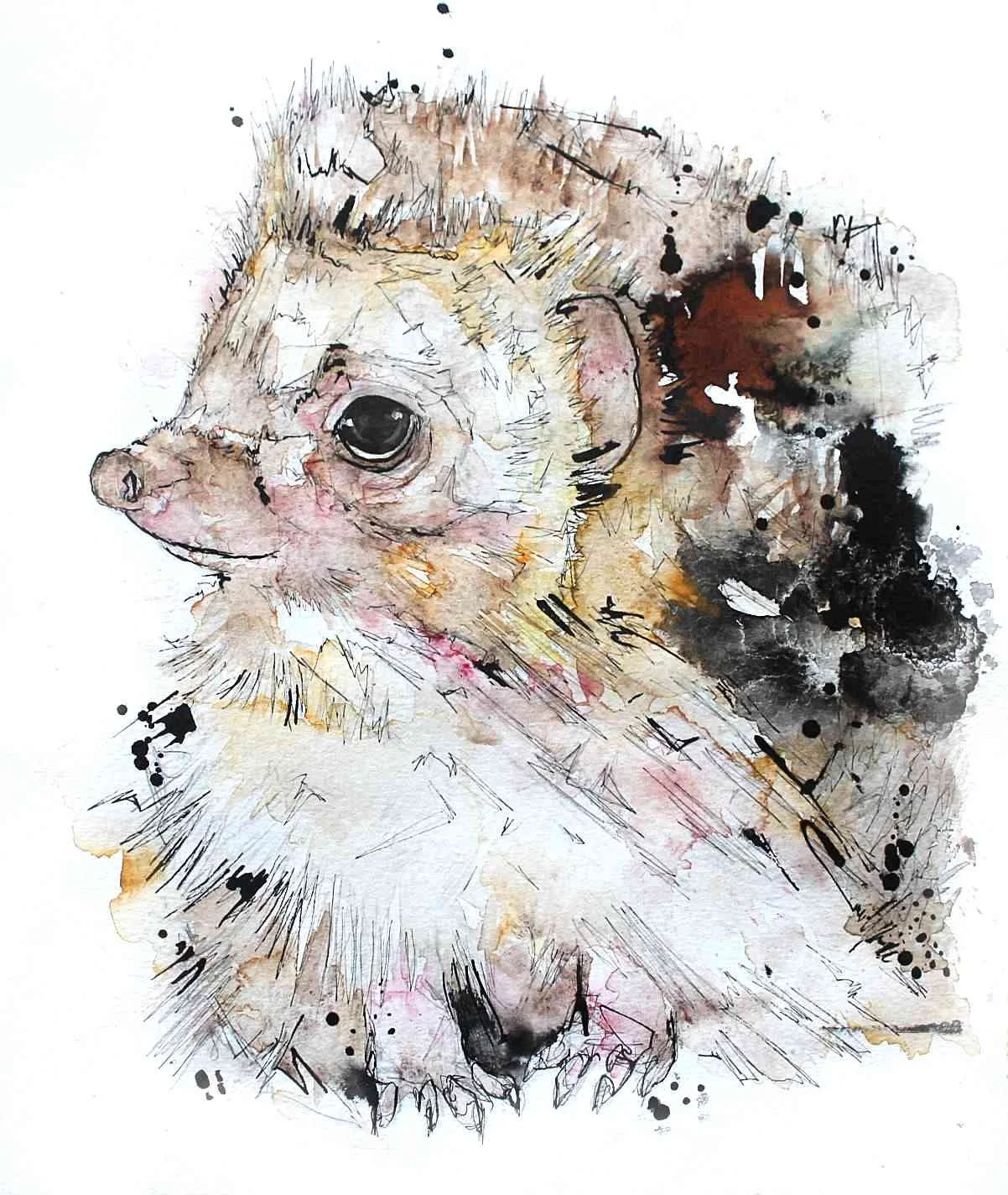 This young British hedgehog I am painting in contrast to a hedgehog I created in the past.