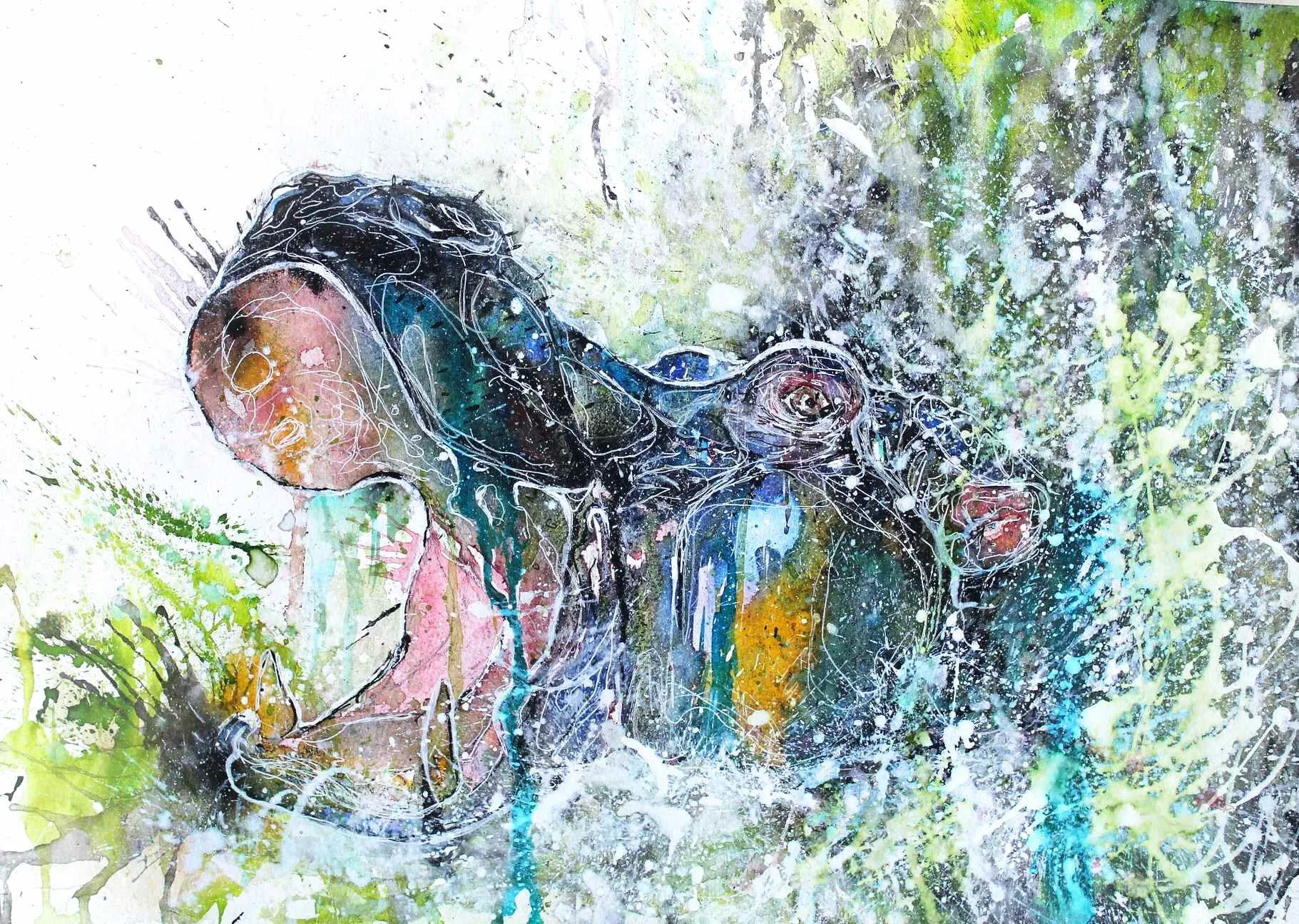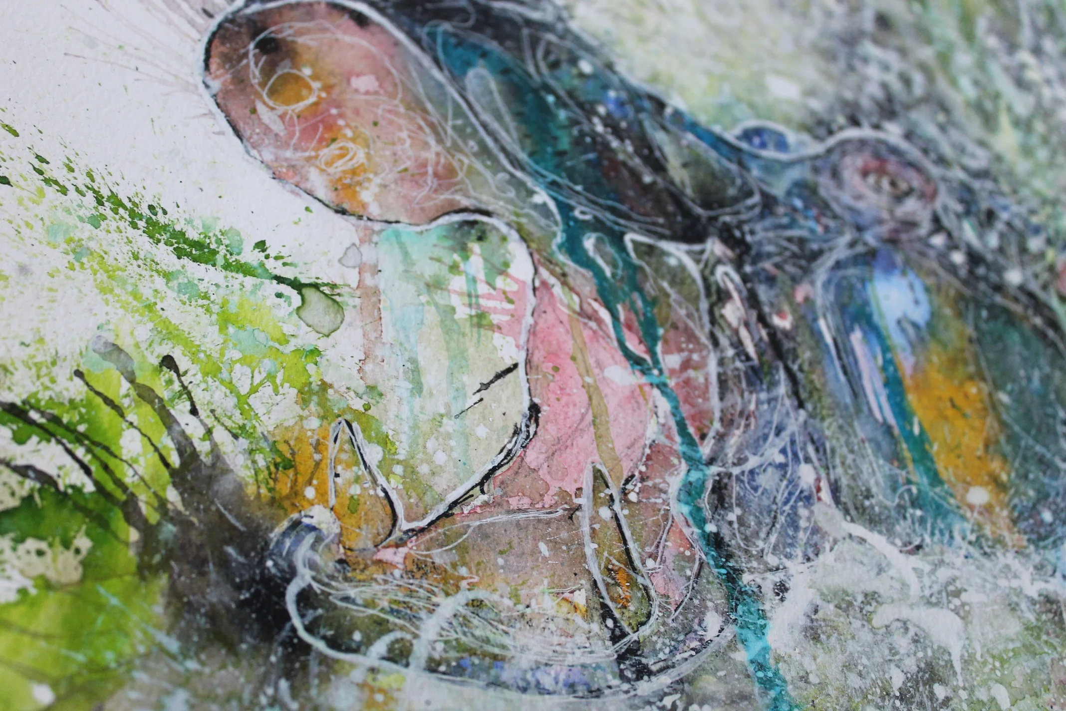 In these images I’ve depicted a red river hog and a hippopotamus. I used watercolour, inks and white pen and as you can see, I’ve gone a bit splatter crazy with white gouache. I’ll do better next week!