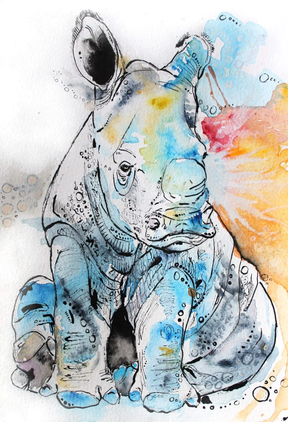 I made these couple of drawings for Illustration Friday’s topic, Sweet. And honestly you cannot help be in awe of baby rhinos, they are so delectably squishable!