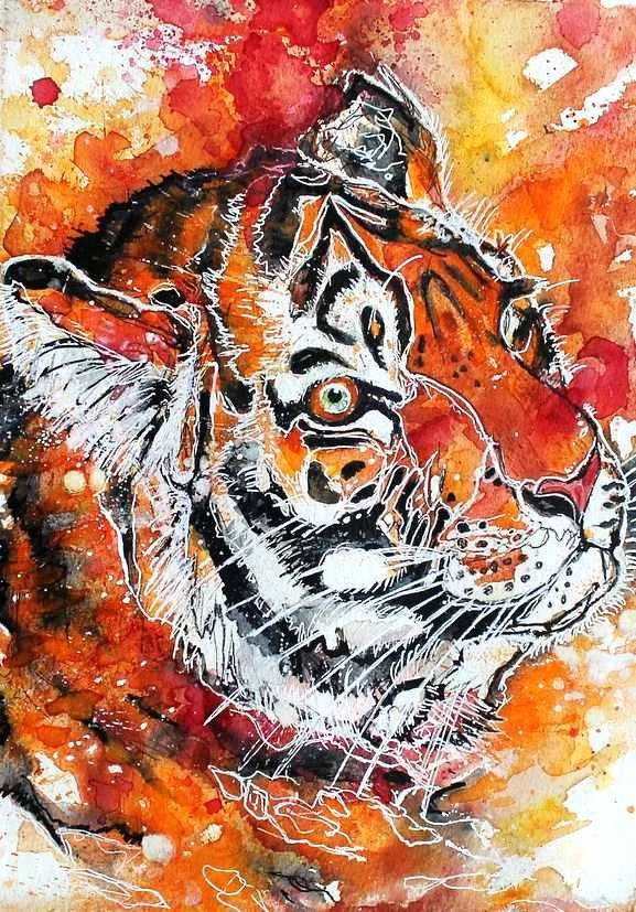 I experimented with carbon transfer paper for this piece. Slipping carbon paper under the original hand-drawn image, then redrawing over the image is so much easier as it leaves a bold copy of the drawing behind on the watercolour paper. Also carbon doesn’t dissolve away when water is added, so no need for ink! This image was brought to you by that wonderful carbon paper, watercolour, white pen and ink.
