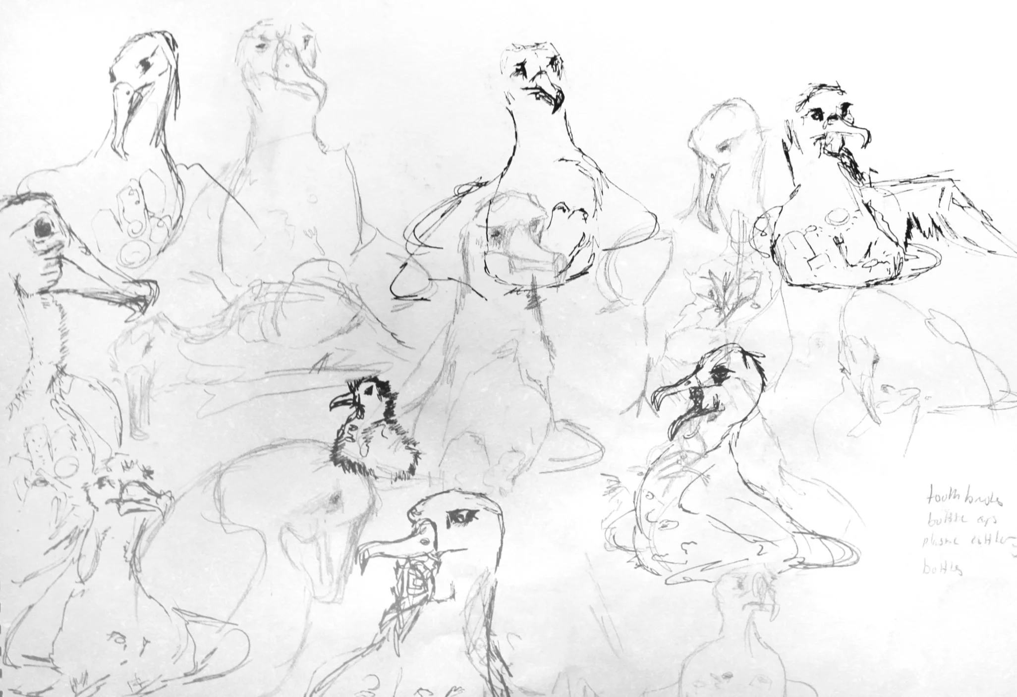 The way these gentle birds churn this plastic poison through their bodies with these deadly consequences is heartbreaking so I amassed a fair amount of research and began thinking about how to relay their story to my fellow students at Kingston University.