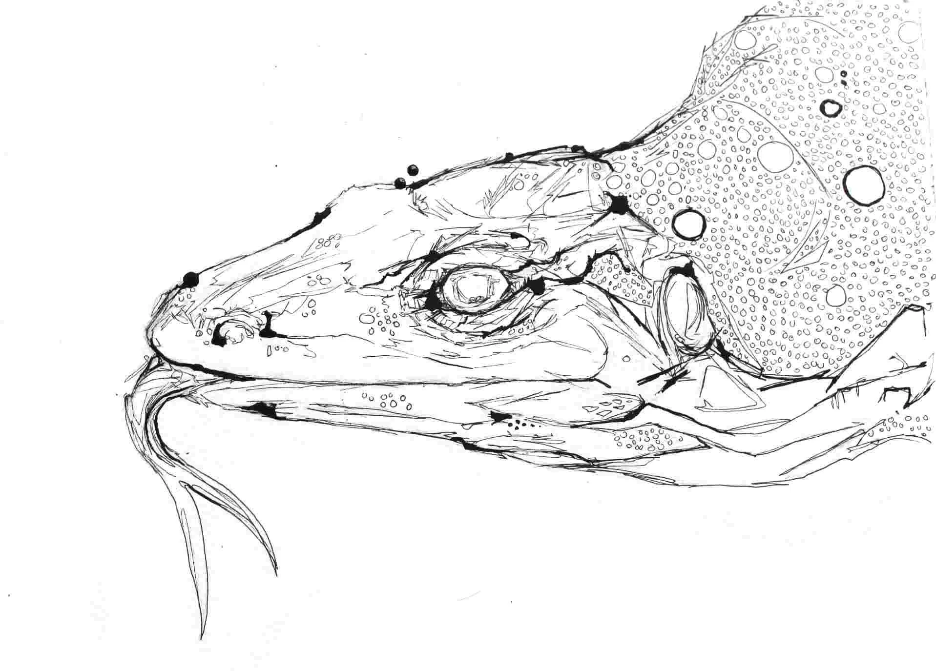 A monitor lizard drawn on cold pressed paper using Indian inks. Once dry, I plan to paint him pretty using watercolours and Colorex inks!