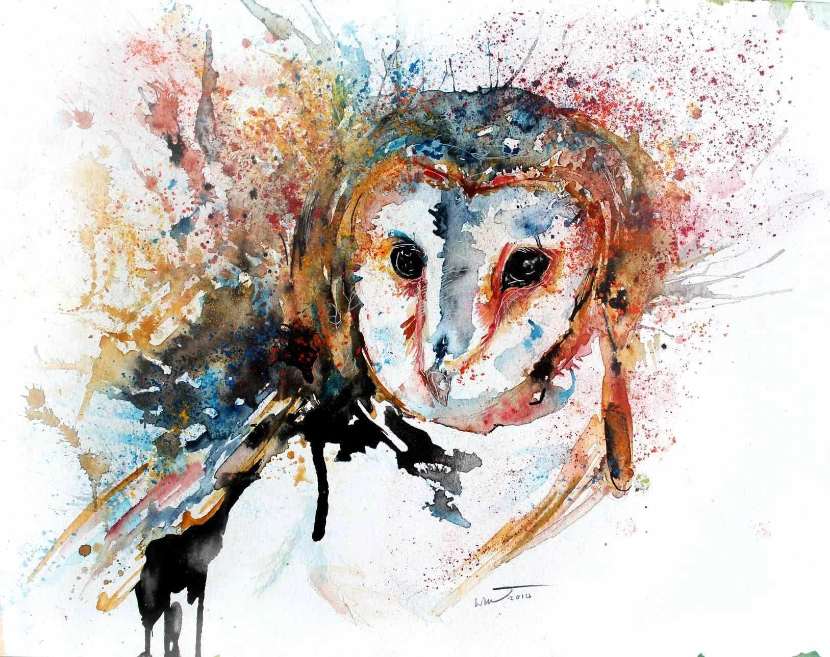 Here are some quick studies of owls, I didn’t have a lot of time this week as I succumbed to more dreary checkout work. For the painting I used a ruler to scratch off pastel pigments which seems to give my owl a rather interesting floral halo. I used my regulars, watercolour, ink, pastel and white pen for the barn owl painting.