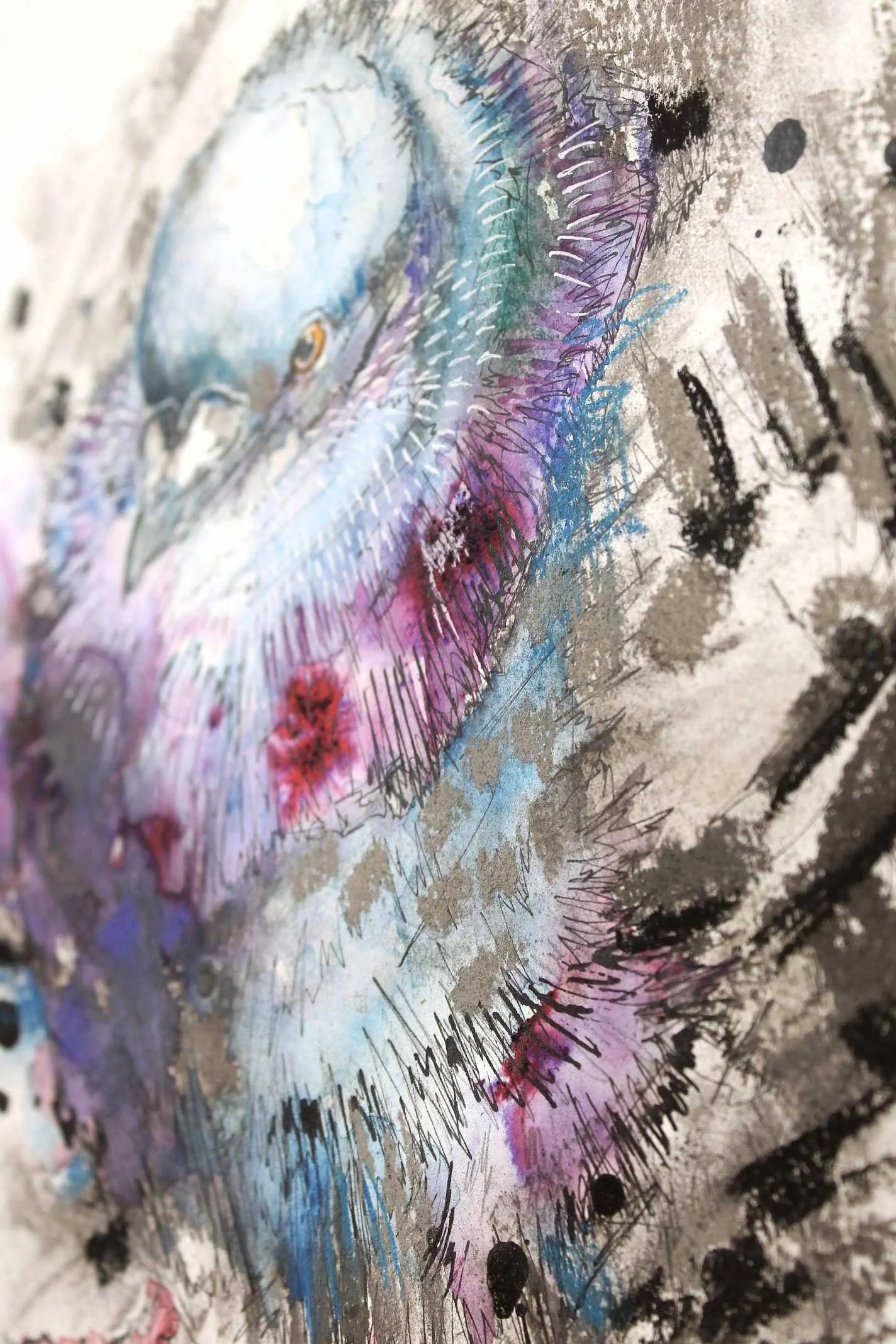 But I recently brought them out after feeling in a bit of a rut and discovered I really enjoy them! I particularly like the sculptural aspect of them, scoring the paper erratically but also knowing you can remove the colour instantly with a dry paintbrush or rubber. I really love pigeons, they are my favourite animal, so I thought they could spur me onto make something interesting.