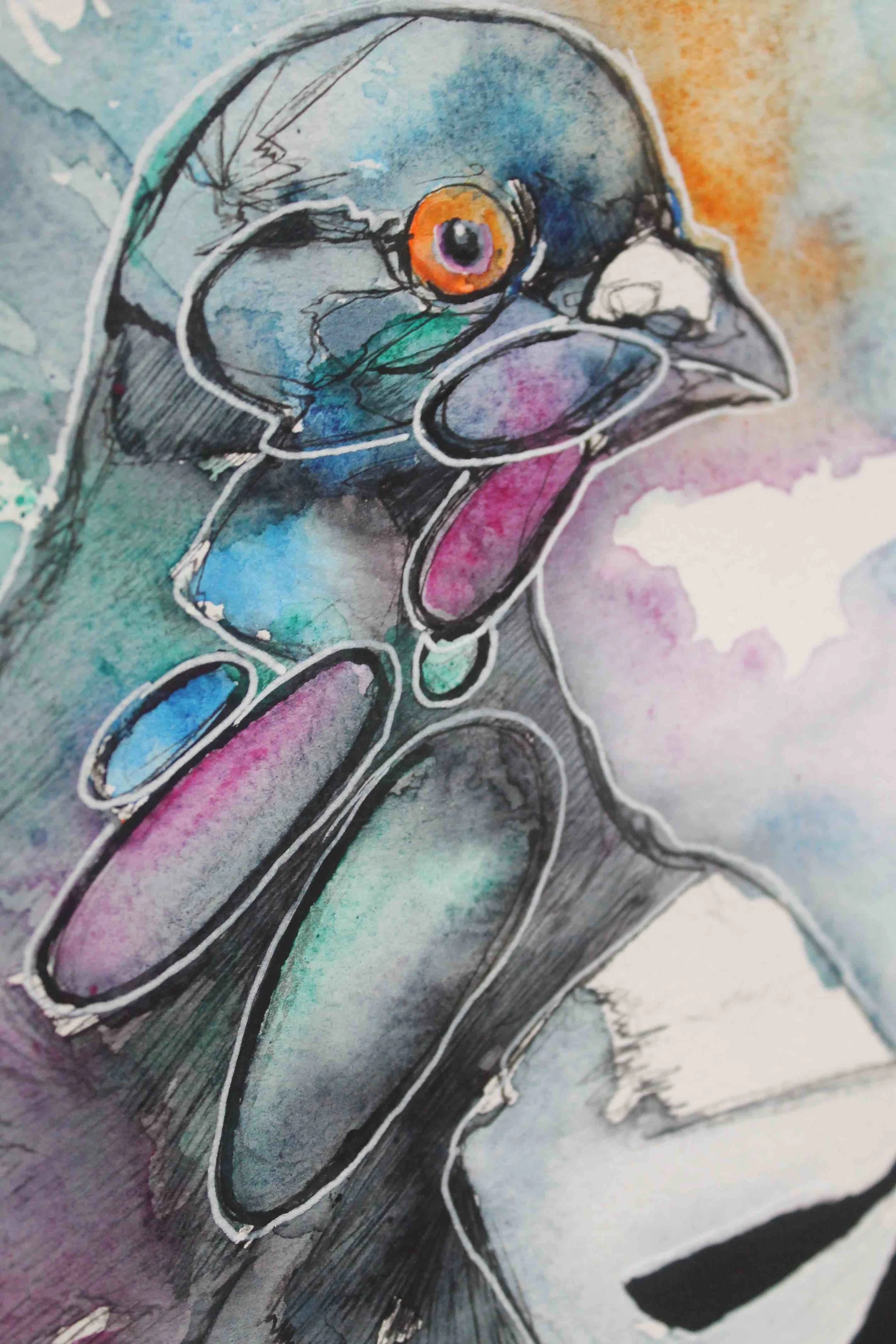 Pigeons have to be my favourite animal, plucky, mischievous and super hardy, they never fail to make me smile. Also — very tricky to paint, lots of grey so couldn’t help injecting some limes and some oranges. These two were painted in watercolours and lots of blue ink.