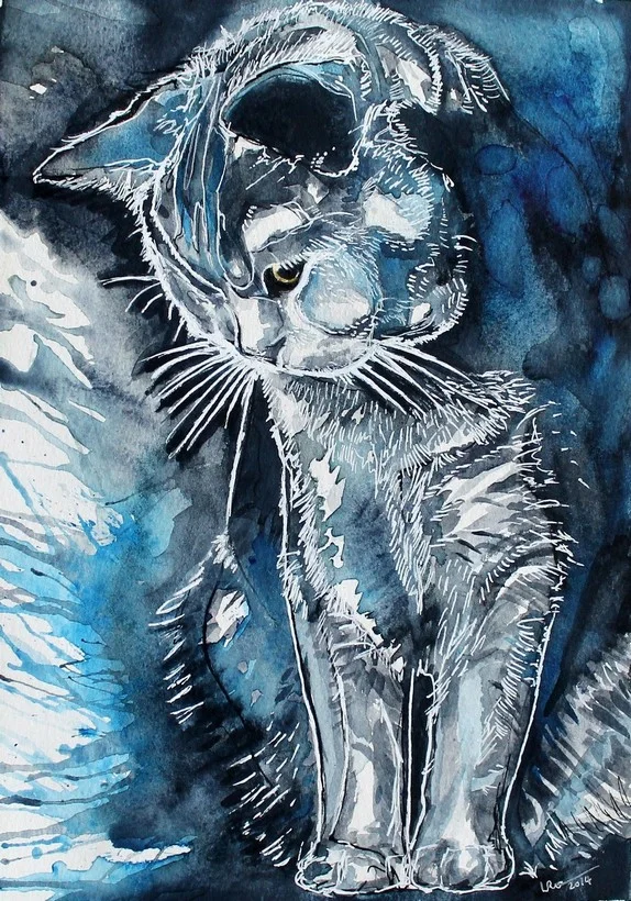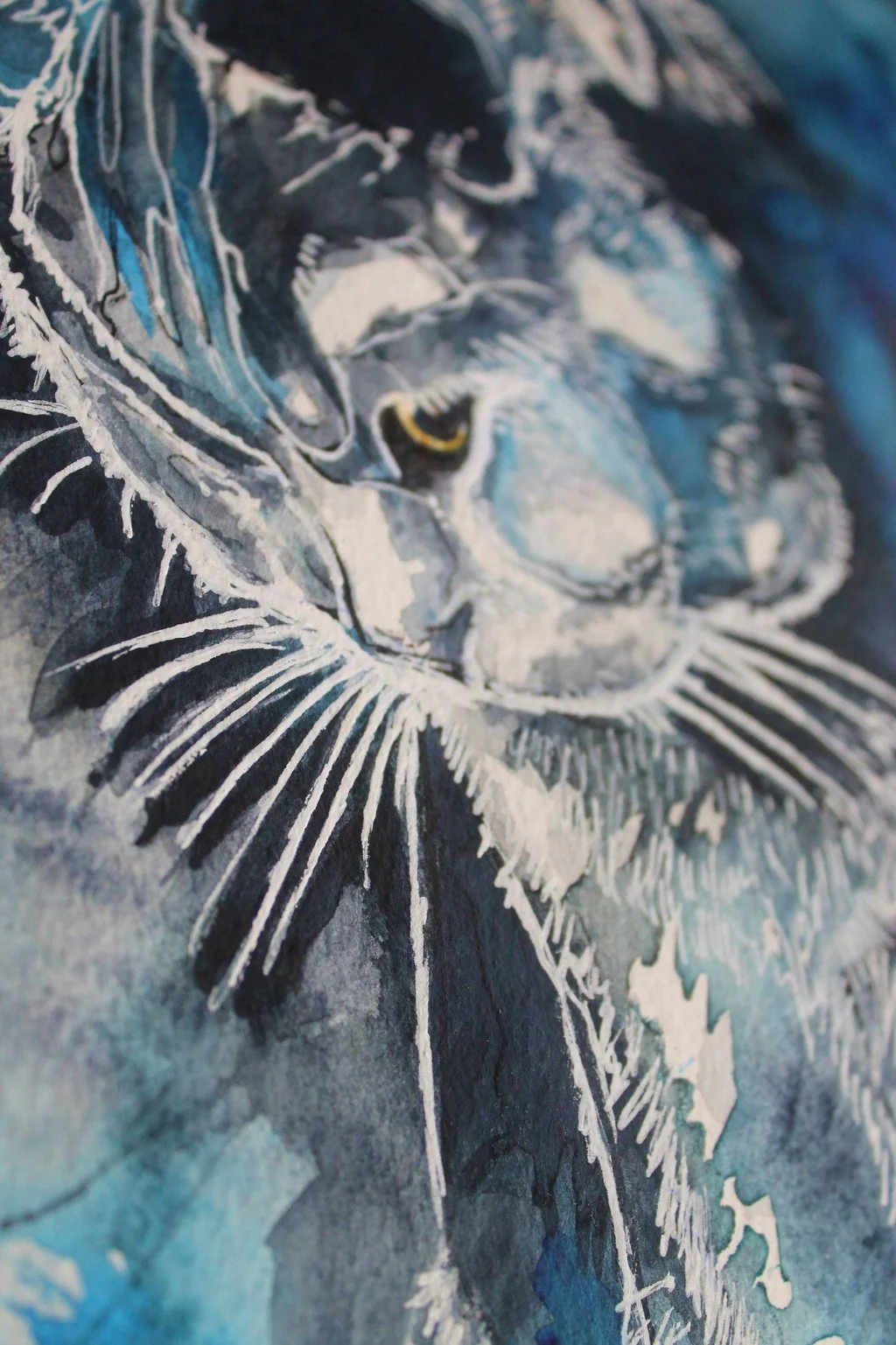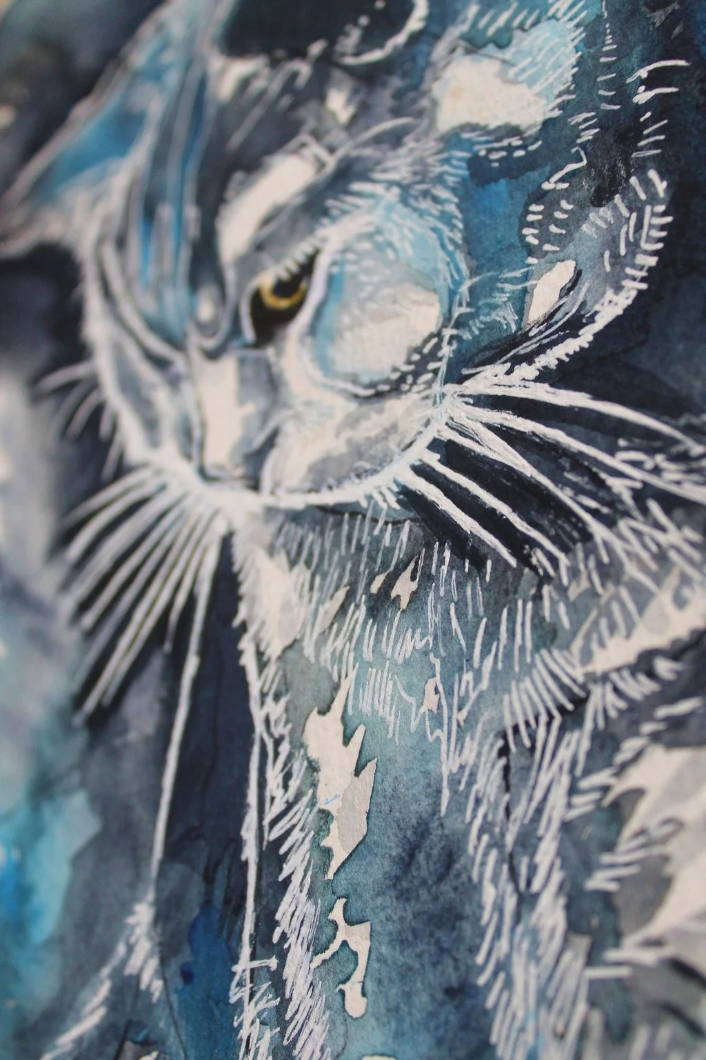 This watercolour and ink painting was a commission from a friend who has asked and asked and asked for a picture of her beloved British blue “Welly” who is a lovely boy, but getting on. I often shy away as it’s quite a bit of pressure with pet commissions and I’m terrified the painting won't resemble peoples pets at all!