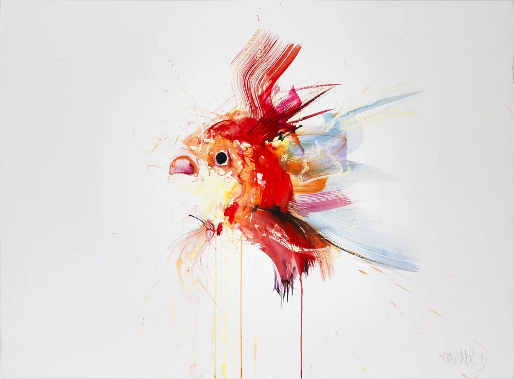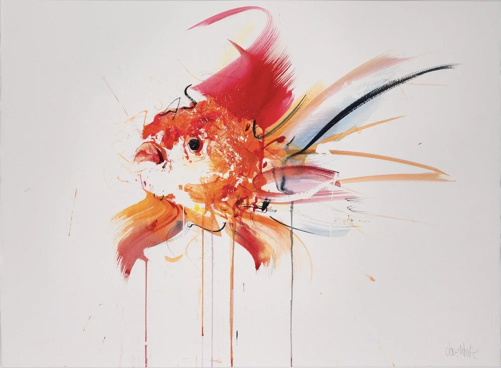 I found Dave White’s work whilst looking for watercolour artists, and was immediately drawn to his goldfish paintings. The expressions on their little faces are so delightful! Along with the flicks and scrapes of paint which captures that natural majesty of the often overlooked goldfish.