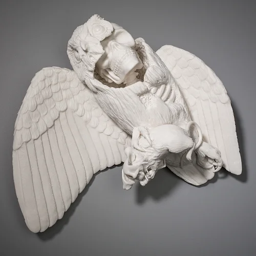 Kate MacDowell's porcelain sculptures explores mans detrimental impact on the natural world. This friction between mans contemporary lifestyle and the natural world is captured breathtakingly in these intricate porcelain pieces. MacDowell chooses porcelain as a medium for its fragile quality which further emphasises the message behind her work.