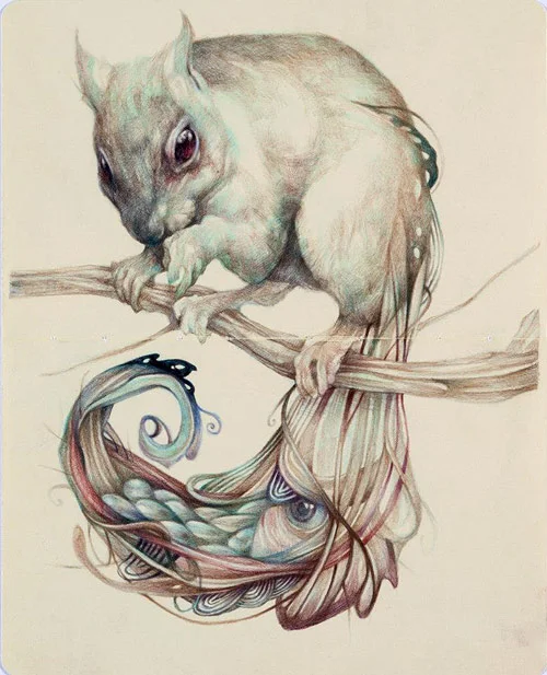 Italian-based Marco Mazzoni uses mainly coloured pencils for his pieces, these soft works have a dainty beauty to them which I really appreciate.